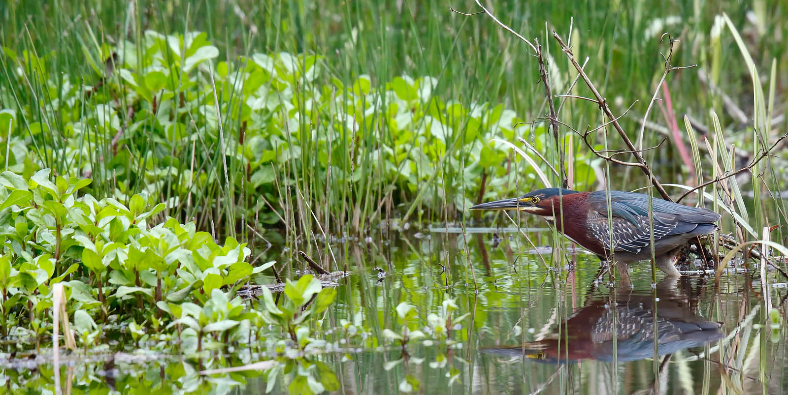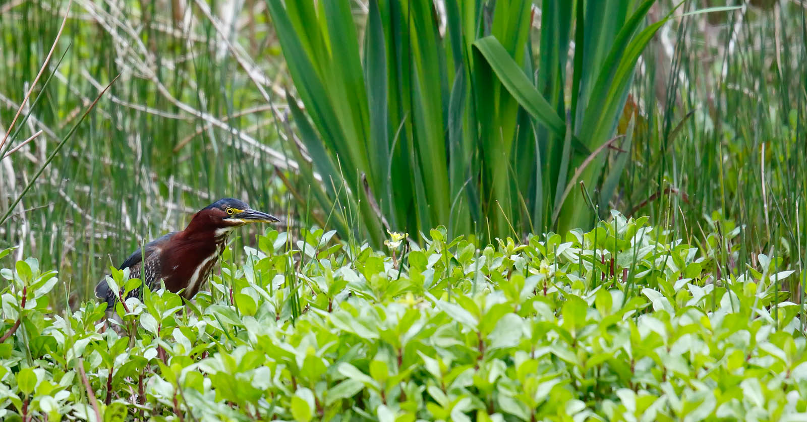 A first winter Green Heron, a North American species and a rare vagrant to Britain, had been found in a garden in the small Pembrokeshire village of Narberth. The bird had taken up residence in a large pond in the garden of a local resident, who kindly opened up his premises to visiting birders. The Green Heron had been present for well over a week and fortunately was still faithful to the pond on Friday 4th May when we set off to spend the weekend with my cousin in the Welsh seaside town of Tywyn. I decide to do a rather large De-Tour in order to see the bird. A three and half hour drive to Narberth, three hours on the bird, then two and half hours to Tywyn. Well worth the effort though and much better views than the one I saw in Lincolnshire many years ago.
