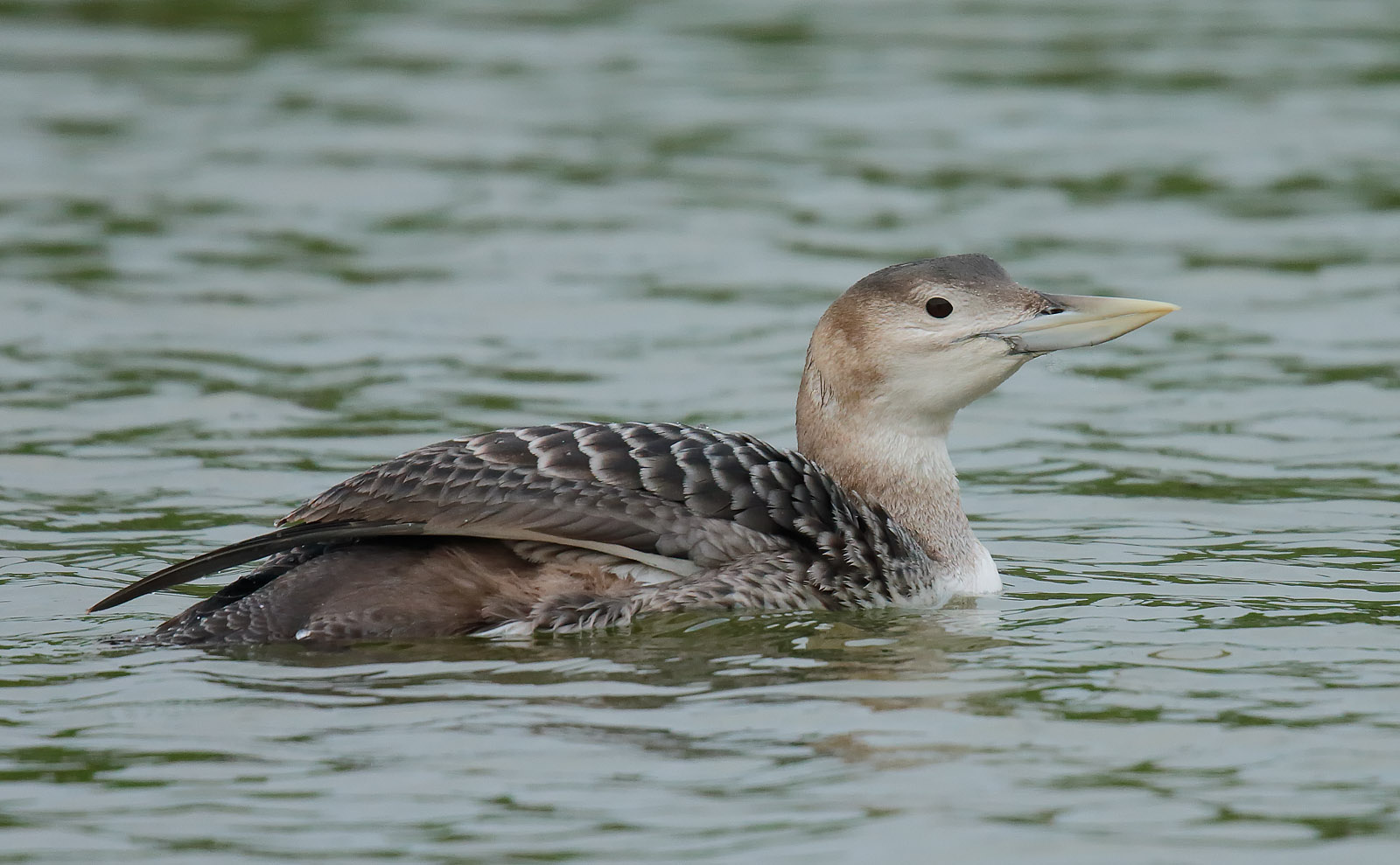 Juvenile divers are well known for getting dispersed, away from the sea during the winter months, especially after severe weather. Our three commoner divers, Great Northern, Red & Black-throated, often turn up on inland waters, such as reservoirs and lakes. However, White-billed and Pacific are real treats and exceptionally rare anywhere inland. When I first photographed this bird the base of the bill and surrounding area was clear of any signs of debris. However later in the morning the diver’s bill seemed to get tangled up in green stringy weed, which it seemed to have difficulty in removing and some of which was dangling from the sides and round the base of the bill, spoiling what would otherwise have been good images. My Year List is on 101.