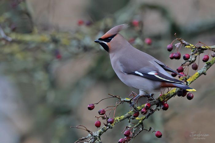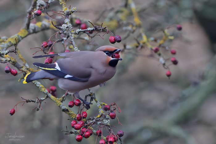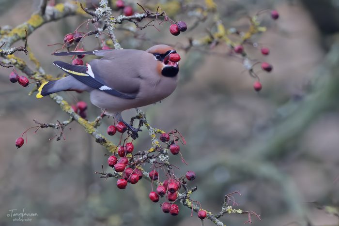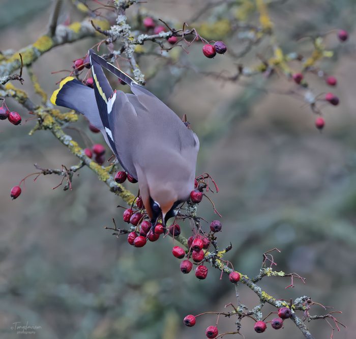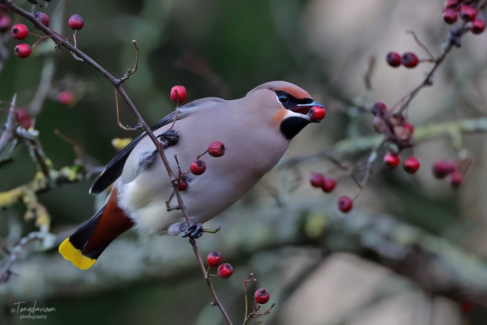 During this winter 2023-2024, the UK has been the host to an invasion of Bohemian Waxwings (Aka, Pink Punks due to the account of their Pink Crests). A rather large flock gathered at Hassop, near Bakewell, providing superb opportunities to see these birds at close quarters. The flock, around c300-400 at its best, but regularly around 200 birds, was quite a sight and one of the largest in Derbyshire for many years. We paid them a visit on 29th December 2023, and I was able to obtain some pleasant photographs, as they were making frequent visits to a hawthorn bush by the main cafe centre. Despite large numbers of visitors, including reasonable numbers of visiting bird-watchers, the Waxwings were quite obliging if one was patient, and kept a reasonable and sensible distance.