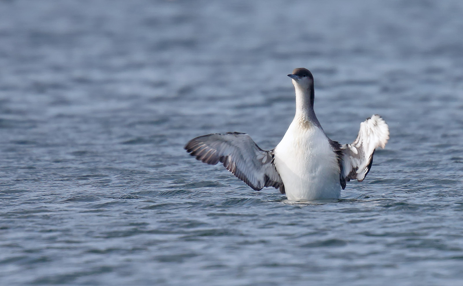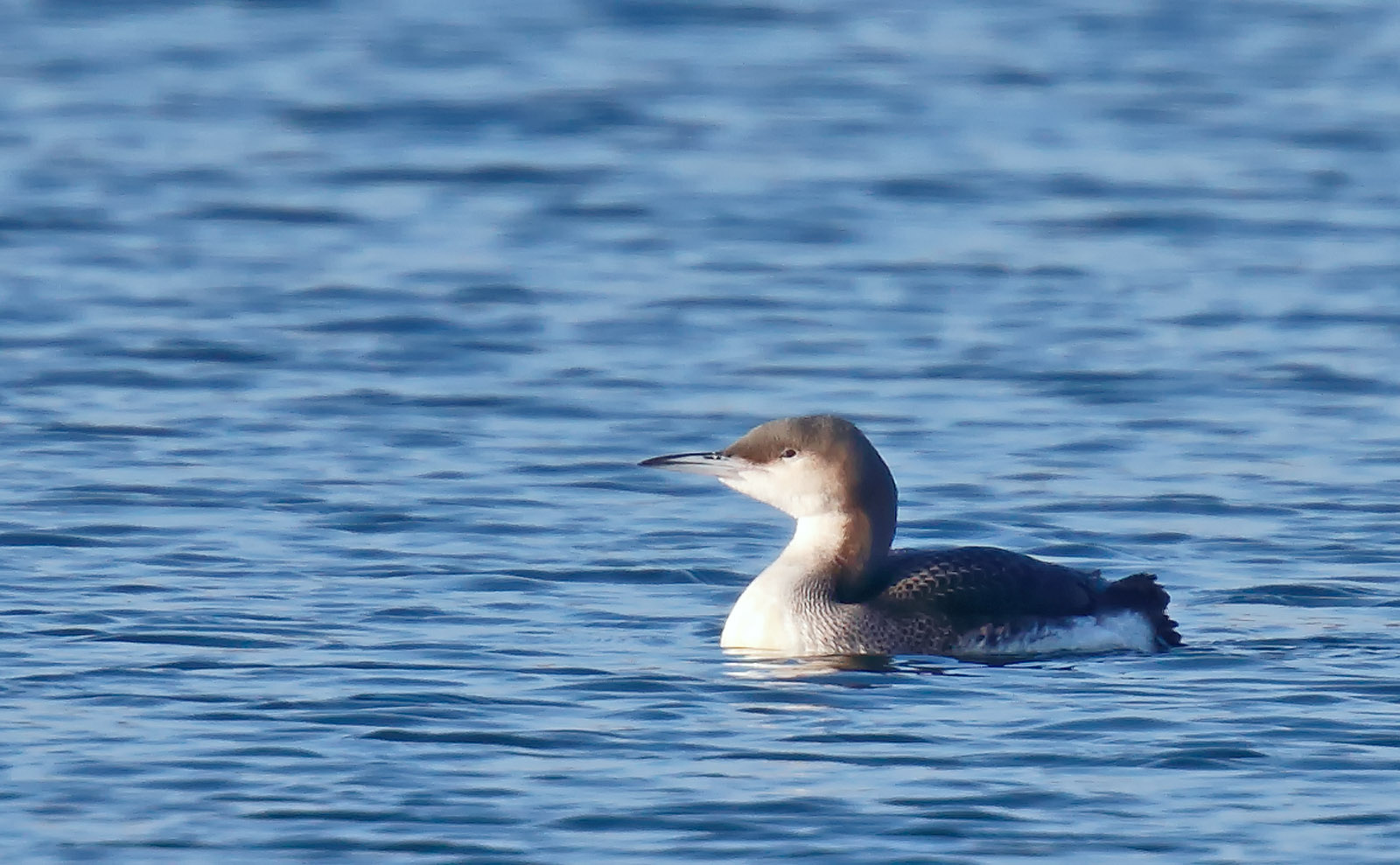 Black-throated Diver – Juvenile – Above 2 images – Albert Village Lake – Note the large white flank patch, a diagnostic feature of this species of diver. – Tony Davison©
