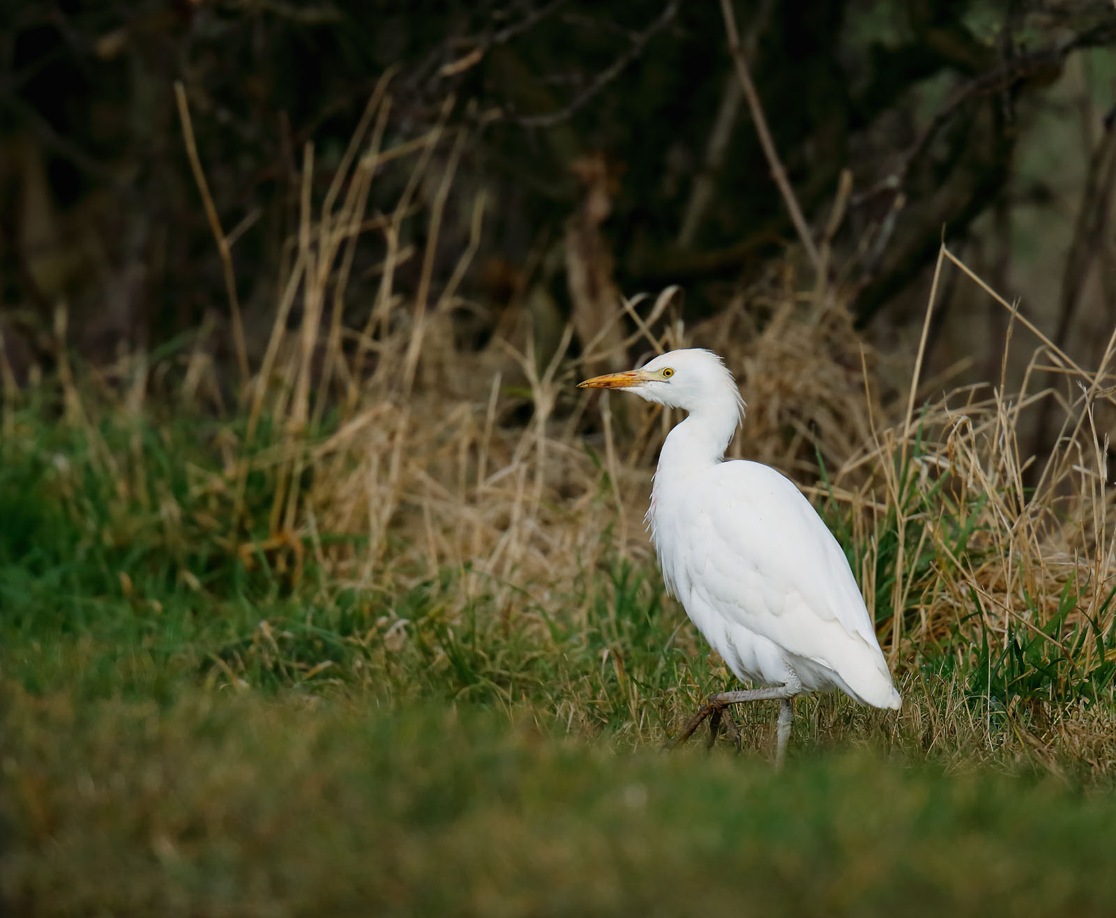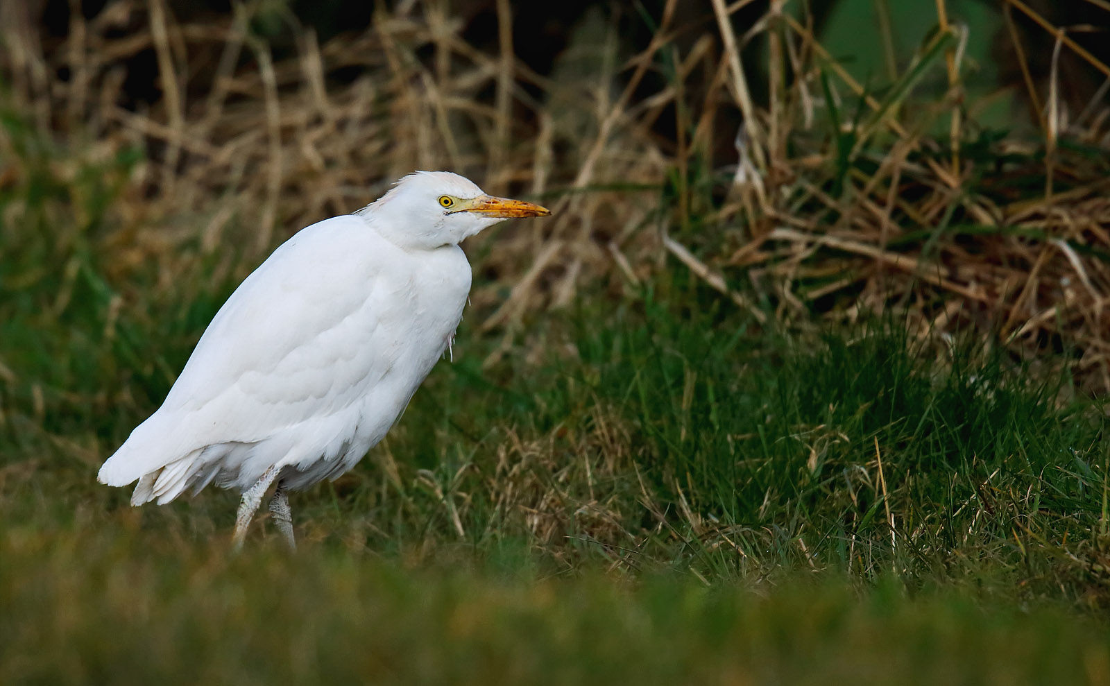 Cattle Egret – Newton Solney, Derbyshire – Above 3 images – One of the 2 birds present. Note the new breeding plumage feathers appearing. All yellow bill and greyish legs help to tell apart from Little Egret – Tony Davison©
