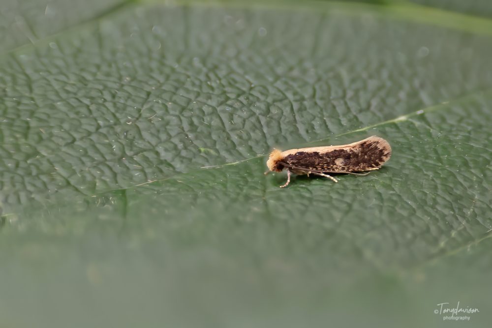 I ran my 20W Actinic Moth Trap from my garden, overnight on 25th June 2024 – Results as follows – Box-tree Moth (4); Brimstone Moth (1); Short-cloaked Moth (1); Riband Wave (10 inc 3 f. aversata); Poplar Hawk-moth (1); Uncertain (5); Buff Ermine (1 male); Willow Beauty (2); Heart & Dart (3); The Snout (1); Common Rustic agg (1); Yellow-tail (1); Small Dusty Wave (2); Garden Carpet (1); Common Emerald (1); Scalloped Oak (1); Heart & Club (1) NFG, Lifer; Common White Wave (1); Common Pug (1); Large Yellow Underwing (1) ; Evergestis forficalis (Garden Pebble) (1); Chrysoteuchia culmella (Garden Grass-moth) (2); Acentria ephemerella (Water Veneer) (2); Scoparia ambigualis (Common Grey) (3); Plutella Xylostella (Diamond-back Moth) (2); Elophila nymphaeata (Brown China-mark) (1); Acleris schalleriana (Verburnum Tortrix) (1) NFG, Lifer; Tineola bisselliella (Common Clothes Moth) (1) NFG, Lifer; Lozotaenia forsterana (Large Ivy Tortrix) (1); Ancylis achatana (Hedge Hook-wing) (2); Crambus pascuella (White-banded Grass-moth) (1); Agapeta hamana (Garden Straw) (1); Eudonia mercurella (Garden Grey) (2); Udea olivalis (Garden Pearl) (1); Notocelia uddmanniana (Bramble Shoot Moth) (1); Ephestia woodiella (Blushed Knot-horn) (1); Monopsis crocicapitella (Pale-backed Detritus Moth) (1) NFG, Lifer; Dichomeris marginella (Juniper Webber) (1); Ditula angustiorana (Red-barred Tortrix) (1); Aphomia sociella (Bee Moth) (2); Coleophora sp (possibly gryphipennella) (Rose Case-bearer) (1). 69/41species